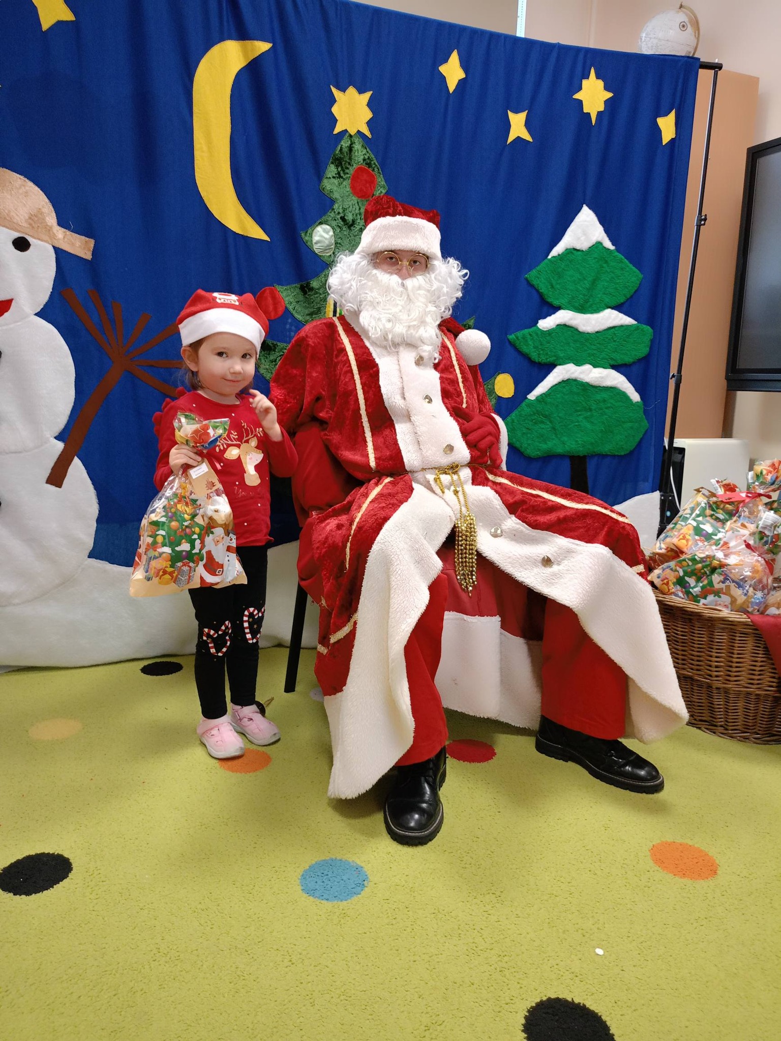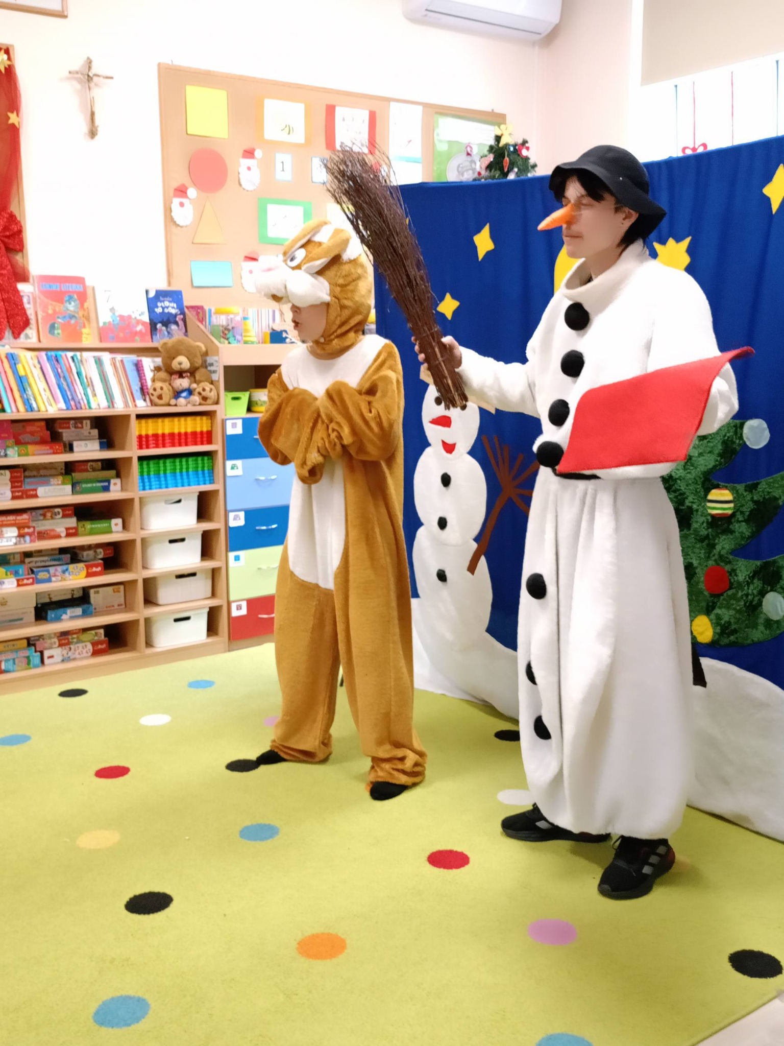 9- go grudnia w naszym przedszkolu gościliśmy aktorów z Teatru Skrzat z Krakowa, którzy zaprezentowali dzieciom przedstawienie pt. "List do Świętego Mikołaja". Lalka, Miś, Zajączek i Bałwanek pomagali Ani dostarczyć list do Świętego Mikołaja. Dzięki przygodom bohaterów dzieci poznały jak wielką wartością jest przyjaźń. Ale najbardziej dzieci czekały na Mikołaja, który już od rana przesyłał przedszkolakom prezenty